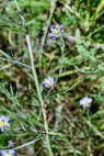 Stems: | | Erect or prostrate, much branched above, glabrous. | Leaves: | | Alternate, simple, sessile, linear to linear-lanceolate, 1/2 to 7 inches long, 1/12 to 1 inch wide, margins entire or remotely serrate, upper leaves much reduced. | Inflorescences: | | Heads in panicle-like, diffuse arrays. | Flowers: | | Involucre 1/5 to 1/3 inch tall; involucral bracts overlapping in 3 or 4 series, tapering to point, greenish toward apex, tip reddish or purple; ray florets 15-30 or more, ligule 1/8 to 1/6 inch long, purple to pink or white; disk florets numerous, yellowish. | Fruits: | | Achenes, tiny, glabrous, brownish; pappus of hair-like bristles. | Habitat: | | Low, damp or drying sites; saline soils. | Distribution: | | Principally in central and south-central Kansas. | Forage Value: | | Rarely grazed by livestock. | Comments: | | A weedy species that can be a problem in lawns. |