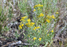Also Called: | | Narrow-leaved goldenrod, flat-topped goldenrod. | Stems: | | Erect, simple or loosely clustered, branching in upper 1/2 to 2/3, mostly glabrous, often sticky. | Leaves: | | Alternate, thick, firm; basal and lower stem leaves drop early; persistent stem leaves numerous, sessile, entire, linear or linear-lanceolate, 1.5 to 3.5 inches long, less than 1/3 inch wide, densely glandular-dotted, 1 prominent vein; margins rough; tip gradually tapering to slender point. | Inflorescences: | | Corymb-like, broad, more or loss flat-topped; heads numerous, mostly sessile, in small clusters. | Flowers: | | Involucre to 1/4 inch tall; bracts overlapping, blunt, inner ones pointed, straw-colored; ray florets 5-20, yellow, to 1/10 inch long; disk florets about 1/2 as many as rays. | Fruits: | | Achenes, short-hairy, several-nerved, tipped with numerous white bristles, enclosing small seed. | Habitat: | | Rocky upland prairies and roadsides; open, drying sites; sandy or rocky soils. | Distribution: | | Throughout Kansas. | Comments: | | The flowers have a sweet fragrance. |