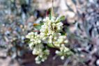 | Stems: | | Erect, much-branched at base, tomentose to floccose. | | Leaves: | | Basal, usually not forming distinct rosette; petiole .02 to 2.4 inch; blade elliptic to oblanceolate, .4 to 2.5 inch long, .02 to 2 inch wide, margins plane or undulate and crisped, apex rounded to acute or acuminate, lower surface densely tomentose, upper surface thinly tomentose, floccose, or glabrous. | | Inflorescences: | | Umbels or compound umbels, on flowering stems 4 to 12 inches long; bracts 3-9, leaflike below, .2 to .8 inch. | | Flowers: | | Involucres 1-8+ per cluster, top-shaped, .06 to .28 inch, tomentose to floccose. Flowers .12 to .3 inch; perianth white to cream-colored, turning brownish orange in fruit, lower surface densely pubescent; perianth segments 6, of two types, outer lanceolate to elliptic, inner lanceolate to fan-shaped; stamens exserted, .08 to .16 inch. | | Fruits: | | Achenes, brown, .16 to .2 inch, 3-angled, glabrous except for sparingly pubescent beak. | | Habitat: | | Rocky, mixed-grass prairies. | | Distribution: | | Kansas plants have been named var. simplex Gand.; the variety is endemic to Logan and Scott counties. | | Uses: | | Native Americans in the Southwest used Eriogonum jamesii for a number of medicinal and ceremonial purposes. | | Comments: | | Herbs or subshrubs, usually tufted or mat-forming.Eriogonum jamesii, for Edwin James, botanist and geologist with Stephen Long's expedition of 1819-1820. |