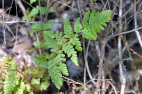 Also Called: | | Tennessee bladder fern. | Culms: | | Creeping, to 6 inches long, old petiole bases congested; scales tan to pale brown, linear-lanceolate, .08 to .12 inch, glabrous. | Leaves: | | Petiole usually with dark brown base, golden-brown distally, 1.2 to 10 inches long, shorter than blade; blade triangular, 3 to 18 inches long, 1 to 5.5 inches wide, (widest at base), bi-pinnatifid, apex acuminate; pinnae short petiolate, generally perpendicular to rachis, mostly opposite, deltoid to lanceolate, .6 to 3 inches long, .2 to 1.4 inches wide, margins serrate, apex acute to acuminate; pinnules obtusely lobed and toothed, veins running to the teeth and sinuses, pinnules near apex with parallel sides and strongly ascending; indusium cup-shaped, somewhat glandular; sori discrete, round, spiny. | Habitat: | | Moist woodlands, shaded limestone or sandstone crevices or ledges. | Distribution: | | East 1/2 of Kansas | Origin: | | Native | Uses: | | The Cherokee took a compound infusion for chills and the Navajo applied a cold, compound infusion on injuries. | Comments: | | The leaves die back in winter. Cystopteris, Greek "Kystos", bladder, and "pteris", fern, alluding to the inflated indusium when young. |